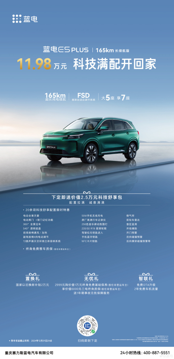 特別是在主銷車型上,藍(lán)電E5 PLUS 165長續(xù)航版搭配2.5萬元科技舒享包,11.98萬元的價(jià)格,不僅極具競爭力,更在性能、配置和續(xù)航上全面領(lǐng)先。與同級車型相比,藍(lán)電E5 PLUS在保持高性價(jià)比的同時(shí),還提供了更加豐富的配置和更加出色的駕駛體驗(yàn)。這種獨(dú)到的價(jià)格策略,使得藍(lán)電E5 PLUS在市場中脫穎而出,上市25天定單破萬,11月10日全面開啟交付以來,累計(jì)交付超5000臺,成為了消費(fèi)者心目中的性價(jià)比之選。
