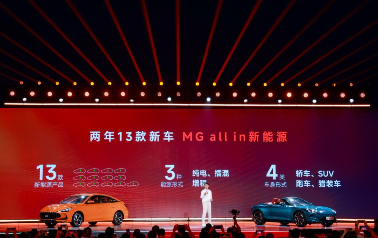 央廣網(wǎng)北京7月1日消息(記者姜鵬)2025年6月30日,上汽集團(tuán)旗下MG品牌舉行了MG Holiday夏日敞開(kāi)玩暨夏季新車發(fā)布會(huì),現(xiàn)場(chǎng)宣布投資超100億元,加速推進(jìn)All in新能源戰(zhàn)略。按照規(guī)劃未來(lái)2年,MG將迎來(lái)產(chǎn)品密集投放期,陸續(xù)推出13款新能源產(chǎn)品,覆蓋純電、插混、增程3種新能源形式,涵蓋轎車、SUV、跑車及獵裝車4大車身形式。