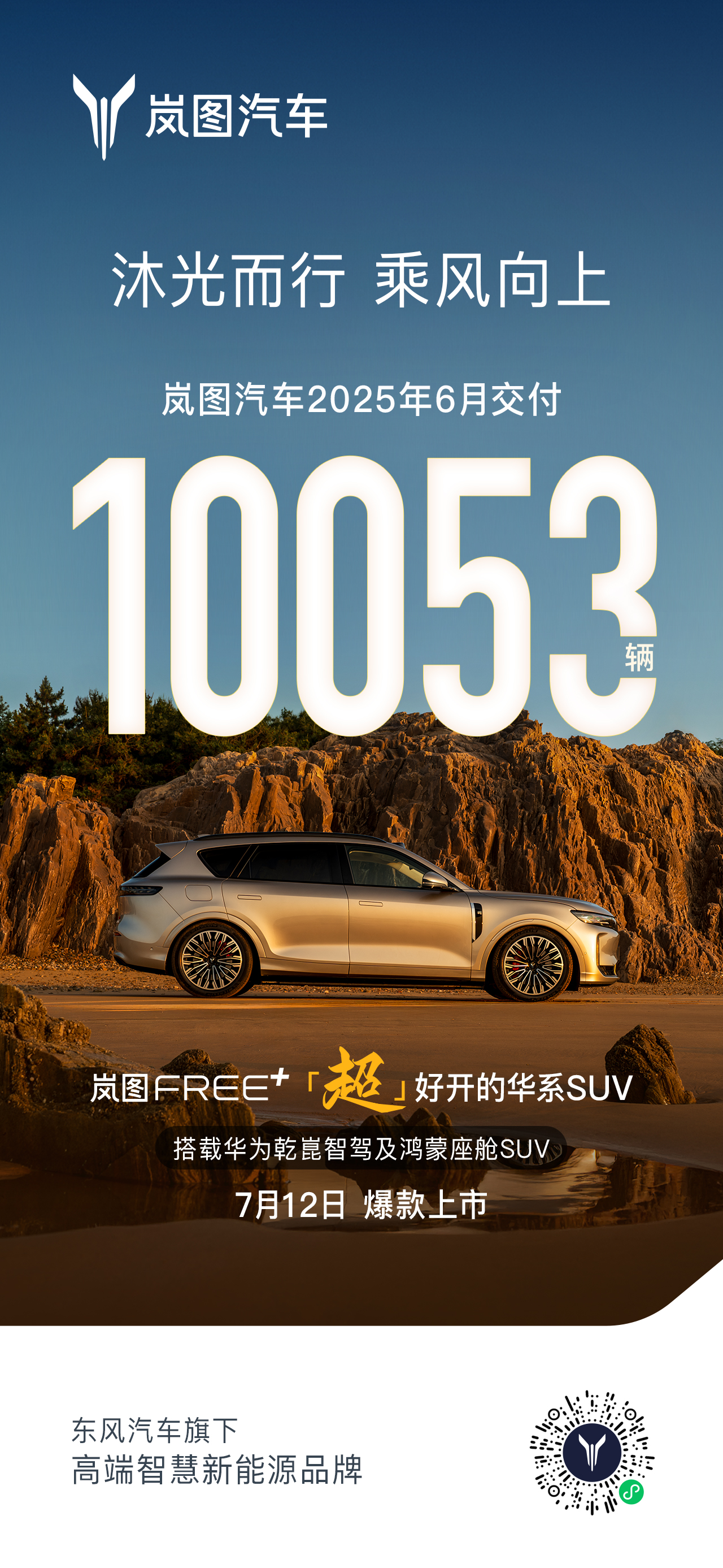 嵐圖汽車CEO盧放表示:“在用戶和合作伙伴的支持下,嵐圖汽車上半年實現(xiàn)了持續(xù)增長,銷量增幅跑贏行業(yè)大勢,為用戶帶來了爆款產(chǎn)品嵐圖夢想家,滿足了用戶更安全更智慧的出行需求。接下來,嵐圖汽車將繼續(xù)以用戶為中心,加快技術(shù)創(chuàng)新,為用戶帶去更多更好的產(chǎn)品和服務,相信隨著7月12日嵐圖FREE+上市,嵐圖銷量還將實現(xiàn)更加跨越式的發(fā)展!”