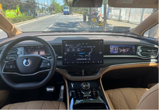 進(jìn)入車內(nèi),騰勢(shì)D9以“雙色豪華”為主題,提供云峰棕、曠達(dá)米等多元配色方案,搭配山海百納真木飾板與NAPPA真皮座椅,營(yíng)造出媲美百萬(wàn)級(jí)豪車的座艙氛圍。中控臺(tái)采用15.6英寸懸浮式大屏與10.25英寸全液晶儀表的組合,搭載騰勢(shì)Link超智能交互系統(tǒng),支持全場(chǎng)景語(yǔ)音控制、多屏共享及10種情景模式切換,操作流暢度與響應(yīng)速度均達(dá)到行業(yè)頂尖水平。