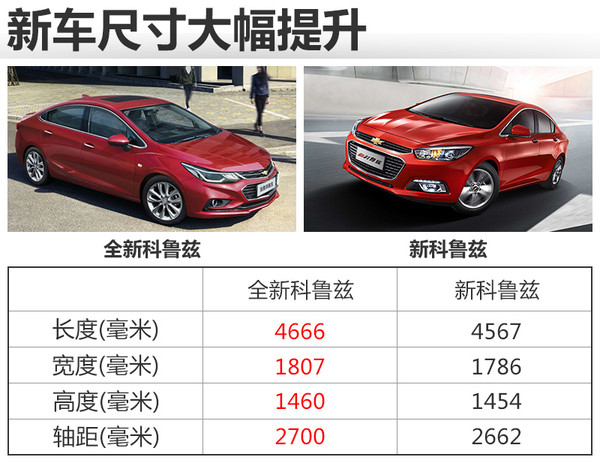 全新科魯茲采用通用全新中級(jí)平臺(tái)打造,整車(chē)長(zhǎng)寬高分別為4,666*1,807*1,460毫米,軸距為2,700毫米。車(chē)身長(zhǎng)度與軸距相比現(xiàn)款車(chē)型,分別增加99和38毫米。對(duì)于同級(jí)別車(chē)型大眾速騰,全新科魯茲車(chē)身長(zhǎng)度與軸距分別超出11和49毫米。乘坐空間將得到進(jìn)一步的提升。