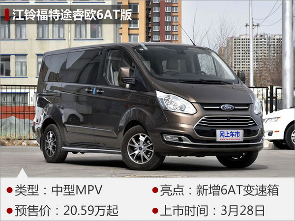 途睿歐是江鈴福特旗下一款MPV車型,目前全系均為手動(dòng)擋車型,其自動(dòng)檔車型將于3月28日上市。外觀方面,新車前臉使用了六邊形進(jìn)氣格柵,側(cè)面配有雙五輻式輪轂,下部則搭載了金屬踏板。車內(nèi)配有四輻式多功能方向盤、7英寸中控液晶顯示屏以及自動(dòng)恒溫空調(diào)系統(tǒng)等舒適實(shí)用配置。此外新車還配備了博世ESP系統(tǒng)、HSA坡道輔助系統(tǒng)以及倒車影像等科技安全配置。途睿歐采用了福特2.0T EcoBoost渦輪增壓發(fā)動(dòng)機(jī),最大功率為149kW,峰值扭矩達(dá)到了300Nm。