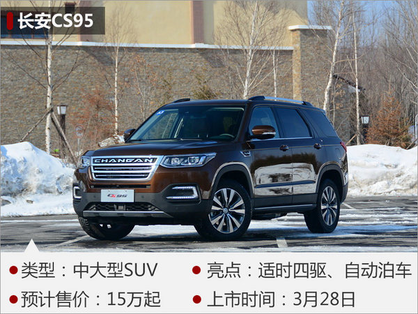長(zhǎng)安CS95是一款中大型SUV,于去年廣州車展正式發(fā)布,并將在今年3月28日上市。CS95的長(zhǎng)寬高為4949*1930*1785mm,軸距2810mm。新車搭載全景天窗、車頂行李架以及LED大燈組等。在內(nèi)部配置方面,長(zhǎng)安CS95配備了方向盤加熱、定速巡航等實(shí)用性配置。此外,新車還配備了ABS防抱死、車身穩(wěn)定控制系統(tǒng)等安全性配置。CS95搭載長(zhǎng)安汽車自主研發(fā)的藍(lán)鯨2.0TGDI發(fā)動(dòng)機(jī),最大功率171kW,峰值扭矩360Nm。