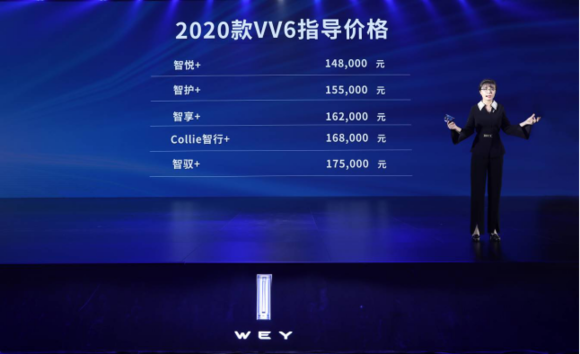 長(zhǎng)城汽車股份有限公司副總裁兼WEY品牌營(yíng)銷總經(jīng)理柳燕公布2020款VV6價(jià)格