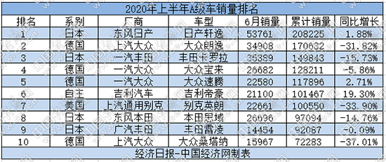 上半年,國(guó)內(nèi)A級(jí)車?yán)塾?jì)銷售227.55萬(wàn)輛,同比下降27.72%,其中德系和日系分別有四款車型進(jìn)入榜單前十,呈現(xiàn)出分庭抗禮之勢(shì)。許海東分析,在經(jīng)濟(jì)困難的情況下,消費(fèi)者會(huì)更加看中低故障率和省油等優(yōu)勢(shì),進(jìn)而選擇德系、日系等品牌。