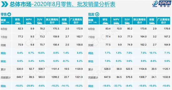 8月,國內(nèi)狹義乘用車銷量達(dá)到170.3萬輛,同比增長8.9%,增速相比上月再度提升。自8月中旬起,大型展會陸續(xù)開展,以及全面的第三產(chǎn)業(yè)恢復(fù),為市場帶來了更強(qiáng)的消費信心和“消費內(nèi)循環(huán)”動力,進(jìn)而促使行業(yè)整體呈現(xiàn)出快速回暖態(tài)勢。