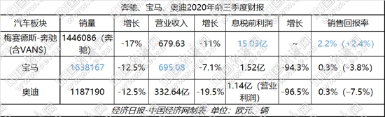 在此帶動下,BBA汽車業(yè)務(wù)一改二季度的虧損、下滑,三季度各主要財務(wù)指標(biāo)均呈現(xiàn)明顯回升,息稅前利潤及銷售回報率等更是實現(xiàn)由虧損轉(zhuǎn)向盈利,寶馬、奧迪在銷量上也分別達到8.6%和6.4%的同比正增長。BBA前三季度各指標(biāo),也因此實現(xiàn)了一定程度的提升。