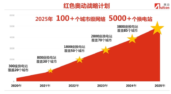 4月19日,奧動以“極速”與“共享”雙擎啟動“紅色奧動戰(zhàn)略計劃”:打造100個以上城市級換電服務網(wǎng)絡;建設5000座以上20秒極速換電站;形成服務200萬車輛規(guī)模以上的多品牌車型共享換電平臺。