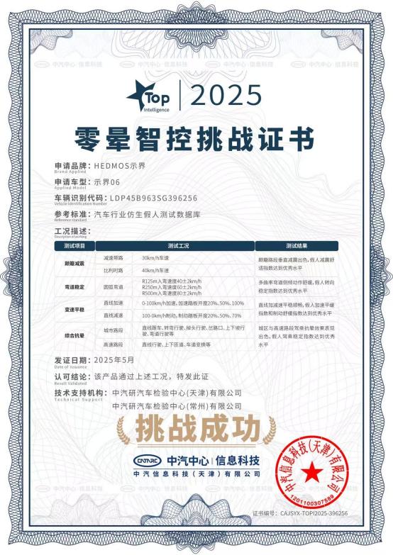 近期,在行業(yè)首次的暈動仿生假人零暈智控挑戰(zhàn)中,示界06展現(xiàn)了優(yōu)異的駕控表現(xiàn)。中國汽車研究中心有限公司高級工程師趙博文在發(fā)布會現(xiàn)場公布測試數(shù)據(jù)時指出:“通過精準的電機扭矩動態(tài)分配、法系底盤調(diào)?;?,以及搭載的‘零暈智控’技術(shù)體系,示界06在六維駕控測試中表現(xiàn)出行業(yè)優(yōu)秀水平。”測試結(jié)果顯示,示界06完美實現(xiàn)了“6不”卓越體驗:簸路不顛、彎道不飄、加速不竄、減速不抖、駕乘不暈、長途不累,為行業(yè)樹立了駕乘舒適新標桿。