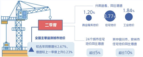 中國國土勘測規(guī)劃院日前發(fā)布的全國主要城市地價監(jiān)測報告顯示,二季度全國總體地價增速微漲。全國主要監(jiān)測城市地價較去年同期增長2.67%,增速較上一季度上升0.23%。