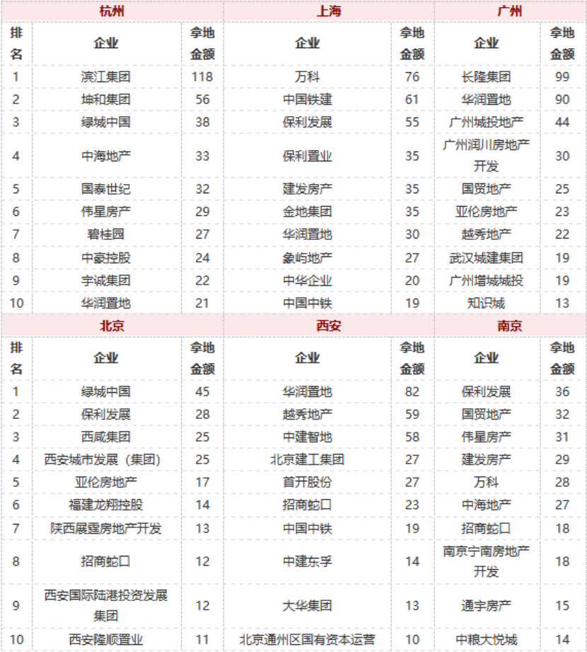 此外,民營房企也在加速回歸,深耕房企增儲(chǔ)訴求明確。劉水提到,自三月以來,龍湖分別在深圳、合肥、長沙、上海、杭州、天津等地拿地,企業(yè)也表示將堅(jiān)持按照20個(gè)主力城市和14個(gè)機(jī)會(huì)城市來布局,聚焦城市的核心區(qū)域;4-5月,碧桂園先后在佛山、太原、杭州競得五塊地塊。