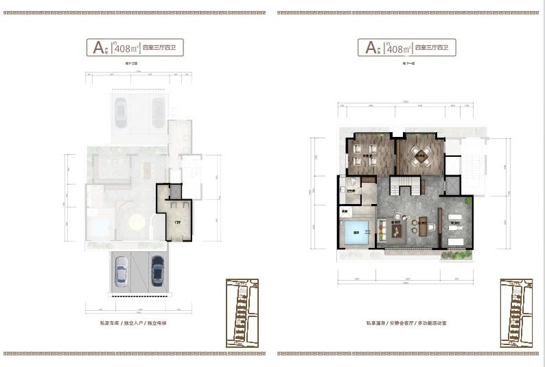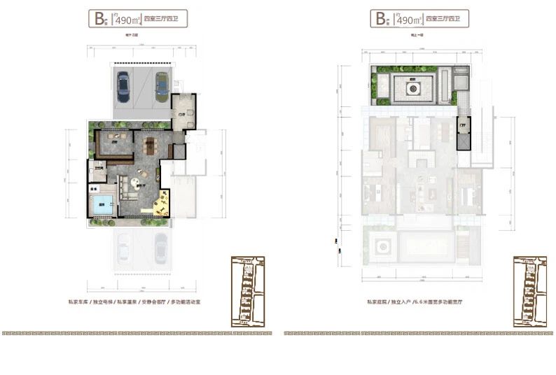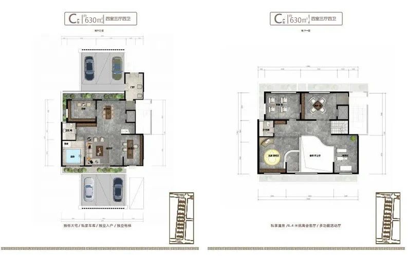 地下室設計不同于傳統(tǒng)地下室,只能為儲藏室使用,而小區(qū)地下室層高和地上建筑面積層高一致,達到了3.2米,沒有空間壓抑感,在南北庭院都設有1.2米的通風采光井,室內(nèi)鋪設地暖及溫泉管道,上下水和衛(wèi)生間,私密性特強,可以設計桑拿房,健身房,保姆間,洗衣房,酒窖及休閑娛樂等多功能區(qū)域,對于鄰居既不會產(chǎn)生噪音干擾,更不會打擾到家人的休息,在提高了生活品質(zhì)的同時也不會由空間局促感,地下室可以直通地下私家車庫,車庫層高4.2米,寬約7-10米,至少可以容納家用汽車三輛