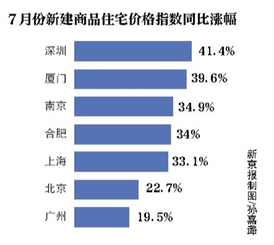 國家統(tǒng)計局數(shù)據(jù)顯示:7月份廈門新建商品住宅價格指數(shù)較上月環(huán)比增長4.6%,較去年同比漲幅達39.6%。