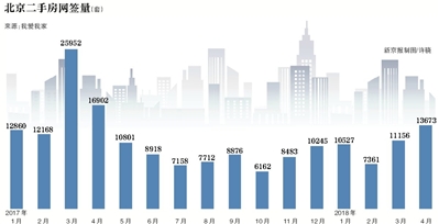 據(jù)我愛我家集團市場研究院統(tǒng)計,4月北京二手住宅共網簽13673套,同比2017年4月下滑19.1%,環(huán)比2018年3月上升22.6%。雖然同比仍在下降,但4月的二手房網簽量是去年5月至今12個月里的最高值。