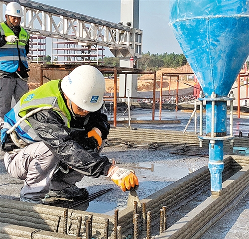 “工人可以趁著混凝土砂漿尚未凝固時在墻體底部開洞,為墻體內(nèi)的鋼筋籠與地基中的鋼筋焊接預(yù)留出空間。”中建二局廣東建設(shè)基地有限公司科技部副經(jīng)理黃云補充說,“手感像是切蛋糕,操作起來相當(dāng)方便”。
