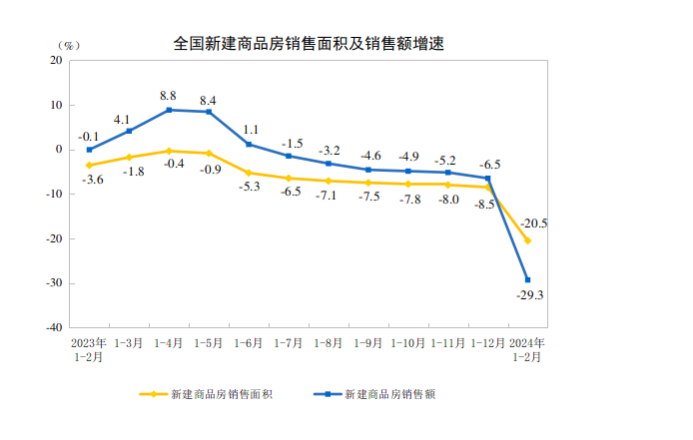 國(guó)家統(tǒng)計(jì)局?jǐn)?shù)據(jù)顯示,1-2月全國(guó)房地產(chǎn)開發(fā)投資累計(jì)同比繼續(xù)下降,但降幅相比于2023年全年有所收窄。
