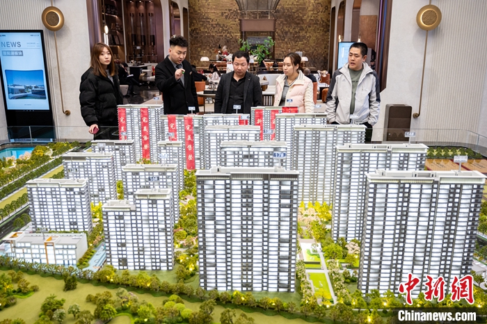 圖為3月7日,太原一家房地產公司新開樓盤吸引購房者關注。 中新社記者 韋亮 攝