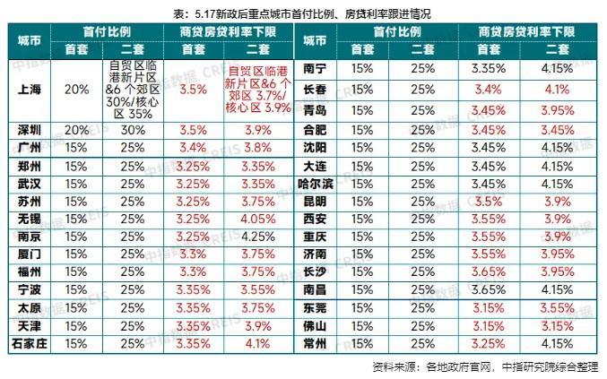 “近期各地政策的步調(diào)非常一致,充分落實(shí)‘517’降首付降利率的政策導(dǎo)向,充分體現(xiàn)房貸政策雙降是近期各地‘一城一策’的重要特點(diǎn)。”易居研究院研究總監(jiān)嚴(yán)躍進(jìn)認(rèn)為,各地政策的思路和邏輯非常清晰,近期普遍會(huì)出臺首付比例調(diào)至15%、房貸利率自由定價(jià)、三套房給予最優(yōu)信貸支持等政策,全國購房首付比例普遍進(jìn)入“15%時(shí)代”。