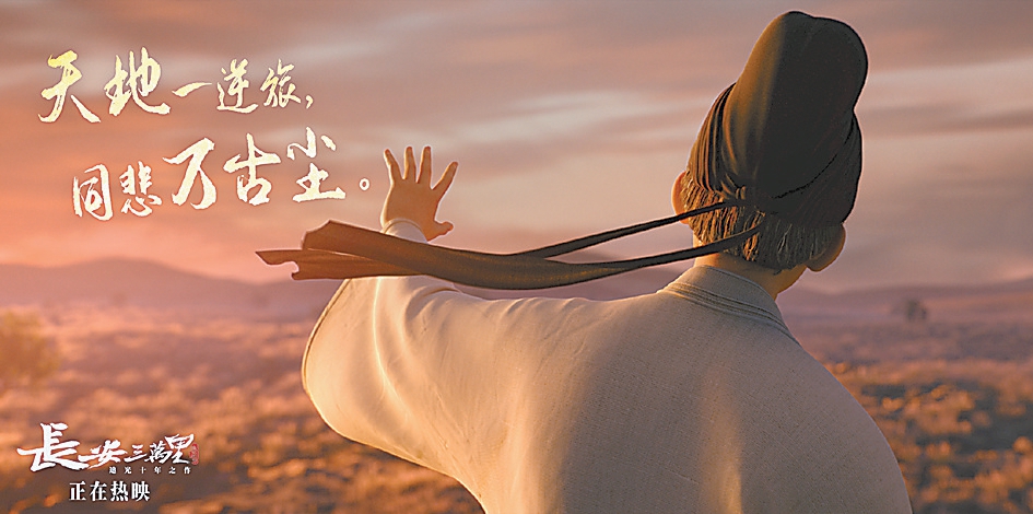 如果說張藝謀執(zhí)導(dǎo)的《滿江紅》,成功點(diǎn)燃了觀眾對(duì)岳飛創(chuàng)作的《滿江紅》這首詞的熱情。那么,動(dòng)畫電影《長安三萬里》中48首唐詩的出現(xiàn),則讓觀眾對(duì)唐朝詩歌的熱愛,開啟了一次全年齡段的追捧。小學(xué)生們?cè)陔娪霸豪锛w朗誦唐詩的畫面,是一道只有中國才有的文化景觀。正如中國電影家協(xié)會(huì)副主席尹鴻評(píng)價(jià),“該片創(chuàng)造了一個(gè)傳承創(chuàng)新的范例,找到了傳統(tǒng)文化現(xiàn)代化表達(dá)的全新角度?!?/p>