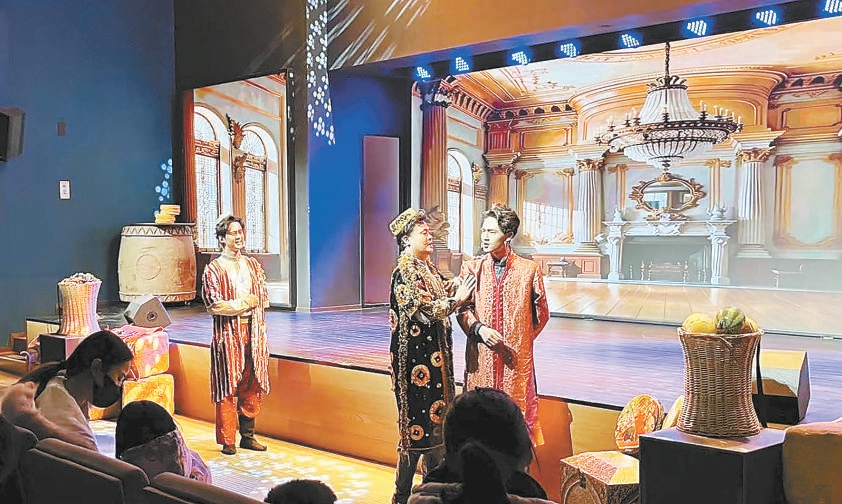 “小朋友們,我們把金幣種在哪里了?”舞臺(tái)上,“阿凡提”一揮手,小觀眾們齊聲應(yīng)和,跟隨他和小毛驢在劇場(chǎng)里開啟了熱火朝天的尋寶之旅。多年來,幽默機(jī)智的阿凡提是幾代小朋友心中的英雄,日前,他走出故事,來到通州臺(tái)湖演藝小鎮(zhèn)北投演藝酒店的劇場(chǎng)里。