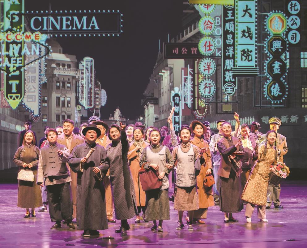 原創(chuàng)民族歌劇《義勇軍進(jìn)行曲》聚焦風(fēng)云時(shí)代下,以田漢、聶耳、夏衍、司徒慧敏、許幸之等為代表的左翼文藝工作者在上海創(chuàng)作出電影《風(fēng)云兒女》及其主題曲《義勇軍進(jìn)行曲》的故事。郭天來攝