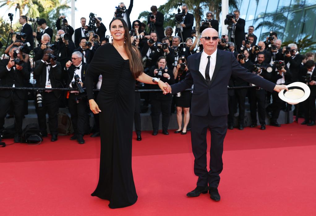 5月25日,在法國南部城市戛納舉行的第77屆戛納電影節(jié)上,演員卡拉·索菲亞·加斯孔(左)和法國導(dǎo)演雅克·奧迪亞爾抵達閉幕式紅毯。新華社記者 高靜 攝