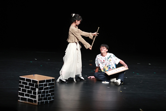 來自全國34個省級行政區(qū)的50多所學(xué)校的中學(xué)生們。主辦方供圖 一株麥子搖動另一株麥子,就像同學(xué)之間思想的傳遞。 從家出發(fā),早上5點(diǎn)起床,趕大巴到從江高鐵站坐3個小時高鐵到廣州南站,輾轉(zhuǎn)1個小時地鐵到廣州東站,再坐3個小時高鐵到贛州西站,下車后再坐兩個小時大巴,最終于晚上9點(diǎn)抵達(dá)會昌戲劇小鎮(zhèn)——這是貴州省從江縣第一民族中學(xué)學(xué)生江義森來過最遠(yuǎn)的地方。 近日,第二屆麥浪中學(xué)生戲劇大賽在江西會昌戲劇小鎮(zhèn)舉辦。與江義森一樣來到這里的參賽學(xué)生,來自全國34個省級行政區(qū)的50多所學(xué)校,包括普通高中、職業(yè)高中、國際高中。 大賽發(fā)起人楊若然,在2023年第一屆時,還是一名江蘇常熟的中學(xué)生?!安煌逃尘暗那嗌倌陸?yīng)該站在一起表達(dá),發(fā)出自己的聲音?!彼f,“一株麥子是一個獨(dú)立的個體,風(fēng)吹來的時候,一株麥子會搖動另一株麥子,許許多多麥子會形成麥浪,就像同學(xué)之間思想的傳遞?!?/p> 孩子們發(fā)現(xiàn)了戲劇的秘密 會昌戲劇小鎮(zhèn)坐落在贛南山區(qū)會昌縣城的西北街,背倚嵐山,綿水和湘水在此匯流為貢水。從最近的機(jī)場到這里需要約兩個小時,而從全國各地的學(xué)校抵達(dá)這里的劇院,也許只要通過一條名為熱愛的“小徑”。 江義森平日里接觸戲劇的機(jī)會并不多,直到在課本中學(xué)到了曹禺的《雷雨》,才開始喜歡上這門藝術(shù)。而直到來參加本屆大賽,他都沒有在現(xiàn)場看過話劇,都是在網(wǎng)上欣賞相關(guān)視頻,“我看過五六遍《雷雨》,4遍《小王子》的音樂劇”。 大賽期間,戲劇大師工作坊邀請多位國際知名的華人戲劇藝術(shù)家,為學(xué)生們提供包括戲劇鑒賞、編創(chuàng)、表演、舞臺設(shè)計、戲劇歷史文化等多種課程。江義森就是在這期間第一次接觸到專業(yè)的戲劇課程,“雖然時間比較短,但老師教的都是干貨,而且需要我們線下馬上實(shí)踐操作”。 雖然來到這個戲劇小鎮(zhèn)的時間不長,但江義森已經(jīng)發(fā)現(xiàn)了戲劇的秘密?!艾F(xiàn)場感比其他藝術(shù)形式都強(qiáng)。我在這兒看了上一屆麥浪選手的原創(chuàng)特邀劇目《627聲自由萬歲》,看了兩場,我有了不一樣的感覺。” 被參加過第一屆大賽的朋友“安利”,廣東省佛山市南海區(qū)第一中學(xué)學(xué)生盧昊欣也來到這里。“我是被‘麥浪’的一句標(biāo)語打動了。我們在戲劇創(chuàng)作中,就是一個人去影響另一個人。不是說一個人的創(chuàng)作能力有多強(qiáng),而是他獨(dú)有的性格、經(jīng)歷,一定會有觸動你的地方。我們彼此都會汲取到那種能量?!?/p> 事實(shí)上,盧昊欣并沒有太多戲劇經(jīng)驗(yàn)。唯一的體驗(yàn)是高一時,學(xué)校辦了一個戲劇節(jié),在操場上鋪了一塊毯子就是舞臺,風(fēng)太大還得拿兩塊石頭壓住“舞臺”,“我們自編自導(dǎo)自演了一部戲”。 但就是在這樣一個簡陋的場地,盧昊欣全情投入自己的角色,忽略身邊所有人的眼光,“那樣的感覺讓我非常享受”。 本屆大賽決賽評委、著名舞臺劇制作人丁乃竺表示,戲劇對一個人打開自己、發(fā)掘內(nèi)在潛能有著特別的功能?!耙皇莿?chuàng)造力,二是專注力,這是戲劇教育所具備的?!倍∧梭谜f,“教育很重要的一點(diǎn),是你有沒有好奇心、有沒有真正的興趣,去進(jìn)入知識領(lǐng)域。如果沒有興趣,學(xué)習(xí)將是痛苦的?!?/p> 他們都在向同一個目標(biāo)高速前進(jìn) 在本屆大賽的主競演單元,學(xué)生們需要圍繞首日公布的元素詞,隨機(jī)組隊(duì),開展為期10天的限時創(chuàng)作,創(chuàng)作出20分鐘的原創(chuàng)劇目。盧昊欣第一次登上這么大的劇場,5人小組帶來一部名叫《左右》的戲。 “我們本來想講的命題很宏大,但后來發(fā)現(xiàn),我們都是剛高考完,站在一個人生節(jié)點(diǎn)上,對未來的選擇比較迷茫。經(jīng)過反復(fù)討論和排練,我們決定讓劇本回歸生活,講述作為高考生的迷茫和人生選擇的取舍?!北R昊欣說,“排演這個劇,并不是想告訴大家怎么解決當(dāng)下的迷茫,而是想說,迷茫的狀態(tài)其實(shí)會在我們的人生中不斷往復(fù),這很正常。我們選擇的每一個未來都有好有壞,不必害怕?!?/p> 未劇團(tuán)創(chuàng)始人劉小未,是本屆大賽的評委與工作坊導(dǎo)師??戳藢W(xué)生們的作品后,他發(fā)現(xiàn),孩子們觀察世界的視角是大人所不具備的?!氨热?,有部劇《你是我的生命嗎》講的是一個女孩未來想做指揮家,但家里想讓她當(dāng)醫(yī)生。學(xué)生們就用這個女孩與一個清代同樣被家庭安排命運(yùn)的女孩對話的方式,來講這個故事?!?/p> 劉小未透露,工作坊的課程包括舞臺設(shè)計,孩子們作品的所有道具、舞美都是自己做的。 戲劇大賽除了帶來專業(yè)知識,還讓孩子們看到了更多東西。比如,全國各地的同齡人。4個人住一間,江義森的室友們都來自不同地方,“他們或多或少都有點(diǎn)專業(yè)知識,對我的學(xué)習(xí)有很大幫助”。 再比如,團(tuán)隊(duì)協(xié)作的重要性。雖然小組內(nèi)經(jīng)?!俺臣堋?,但盧昊欣說:“大家想法不一樣的時候,我就能學(xué)習(xí)怎么去調(diào)解矛盾、怎么讓團(tuán)隊(duì)更加團(tuán)結(jié)。” 劉小未說:“大賽是現(xià