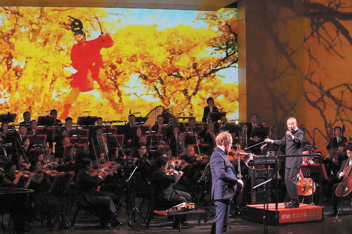 譚盾指揮《武俠三部曲》交響音樂(lè)會(huì)劇照。北京日?qǐng)?bào)記者 方非攝