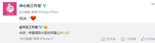 中新網(wǎng)5月20日電今日,霍建華工作室官方微博發(fā)布一條消息,稱“華說(shuō):希望得到大家的祝福。”并艾特了林心如。隨后,林心如工作室官方微博轉(zhuǎn)發(fā)微博,發(fā)表紅心默認(rèn)。