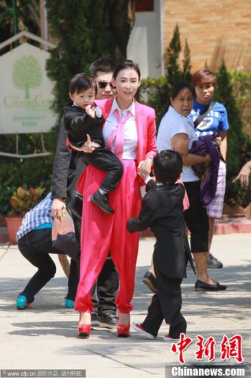 資料圖:張柏芝攜同兩個(gè)兒子Lucas(謝振軒)和Quintus(謝振南)。圖片來(lái)源:CFP視覺(jué)中國(guó)