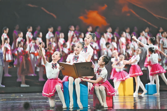 演出由中國宋慶齡基金會、中國福利會、國家大劇院共同主辦,北京市教育委員會、中國青少年宮協(xié)會、北京京劇院支持。圍繞“我和祖國一起成長”的主題,“如日之升·如月之恒”“美美與共·琴瑟和鳴”“翩翩少年·灼灼其華”“薪火相承·筑夢未來”4個篇章層層遞進(jìn),融匯合唱朗誦、戲曲舞蹈、器樂演奏、武術(shù)雜技、非遺文化展示等多種藝術(shù)形式。開場秀《少年強(qiáng)則中國強(qiáng)》薈萃中國大鼓、武術(shù)、舞龍、舞獅,朝氣蓬勃;舞蹈詩朗誦《離騷·少年志》把詩意融入舞蹈,綻放強(qiáng)烈的愛國主義光芒;雜技劇《如日凌風(fēng)》藝術(shù)化呈現(xiàn)“神舟飛天、蛟龍入?!钡目茖W(xué)探索精神;戲劇《硝煙中的燭光》展現(xiàn)宋慶齡為爭取國際友好力量支持中國人民抗戰(zhàn)的場景,以及創(chuàng)辦戰(zhàn)時兒童保育院、用生命守護(hù)國家希望的感人故事……