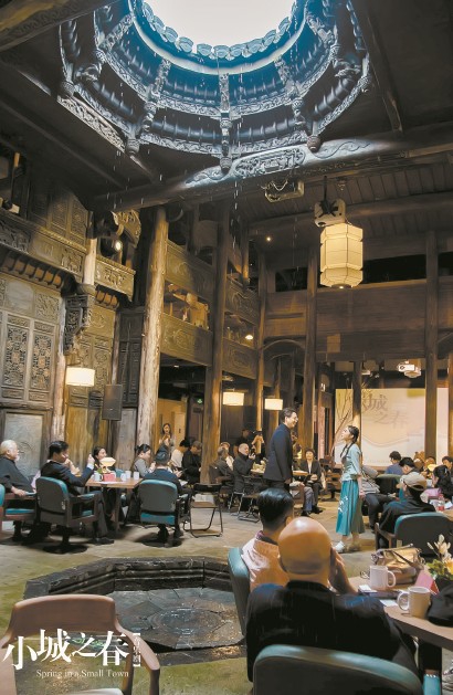 暑期,沉浸式音樂(lè)劇《小城之春》計(jì)劃在上海松江廣富林遺址文化公園老宅持續(xù)演出?!缎〕侵骸穼⒂?00年歷史的集賢坊·知府樓化作小劇場(chǎng),觀眾穿梭于實(shí)景院落,與劇中角色同行于百年老墻、青石板路。五一假期,《小城之春》試演10場(chǎng),觀眾人數(shù)遠(yuǎn)超預(yù)期,55歲以上的輕老族尤其感興趣?!肮耪热魏挝枧_(tái)裝置都真實(shí),觀眾進(jìn)入古宅,瞬間進(jìn)入上世紀(jì)三十年代?!睆堄嗾f(shuō)。