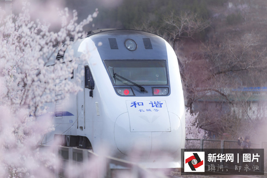 和諧號穿越居庸關(guān)花海 美到窒息