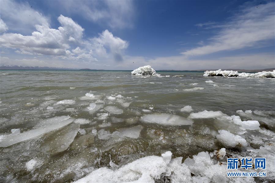 這是5月5日拍攝的西藏納木錯開湖畫面。隨著氣溫升高,西藏納木錯已解凍,全湖開湖,即將迎來旅游旺季。 新華社記者 覺果 攝