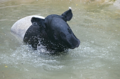 4.馬來(lái)貘在水池中降溫。