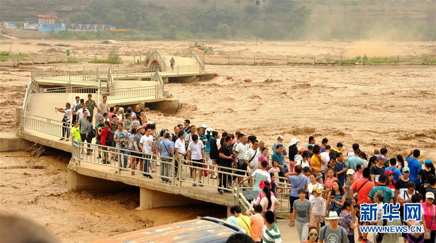 近日,受上游地區(qū)強降雨天氣影響,位于山西吉縣和陜西宜川縣交界的黃河壺口瀑布水量大漲。目前,壺口景區(qū)已啟動應急預警,工作人員加強上游水情監(jiān)測并加大安全巡查力度,確保游客安全。新華社發(fā)(呂桂明 攝)