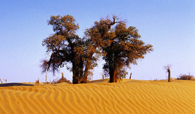 巴州旅游局局長馬彥成說, 由于胡揚(yáng)具有驚人的抗干旱、御風(fēng)沙、耐鹽堿的能力,能頑強(qiáng)地生存繁衍于沙漠之中,因而也被人們贊譽(yù)為“沙漠英雄樹”。巴州輪臺縣羅布人村寨、羅布湖、及若羌縣的阿拉干沿途景色都非常迷人,希望游客到此賞游,將會領(lǐng)略到不一樣的美麗風(fēng)光。