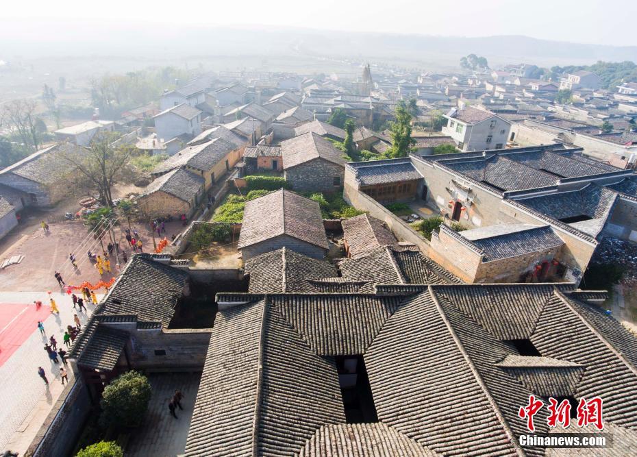 12月10日,航拍位于江西金溪縣有著600多年歷史的中國歷史文化名村、中國傳統(tǒng)村落竹橋古村,俯瞰全村,形似一柄巨扇。該村現(xiàn)保存有明代所建民居8幢,明代祠堂1幢,其余為清代建筑,青磚灰瓦,樸實(shí)素雅,為贛派建筑最典型的代表。村前溪水長(zhǎng)流,良田萬頃,村后茂林修竹,鳥鳴樹幽,身歷其境,如入畫中。傅建斌 攝