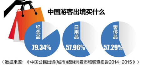 中國(guó)游客“買(mǎi)買(mǎi)買(mǎi)”名聲已傳遍全球。LV、Chanel、Hermes、PRADA、Rolex,這些奢侈品名牌服飾、手表店,隨處可見(jiàn)國(guó)人身影。而近年來(lái),高端日用品也異軍突起,馬桶蓋、牙膏、電飯煲,甚至鍋碗瓢盆,這些國(guó)外超市貨柜上的商品同樣吸引著中國(guó)游客。根據(jù)《中國(guó)公民出境(城市)旅游消費(fèi)市場(chǎng)調(diào)查報(bào)告2014-2015》,近八成的中國(guó)游客在境外旅行時(shí)會(huì)買(mǎi)紀(jì)念品,一半的游客會(huì)購(gòu)買(mǎi)日用品,與購(gòu)買(mǎi)奢侈品的游客比例持平。