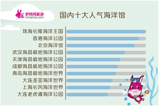 國內(nèi)海洋館熱度方面,珠海長隆海洋王國、香港海洋公園、北京海洋館、武漢海昌極地海洋公園、天津海昌極地海洋公園、成都海昌極地海洋公園、青島海昌極地海洋世界、大連圣亞海洋世界、上海長風(fēng)海洋世界、大連老虎灘海洋公園成為最受歡迎的國內(nèi)十大海洋動物主題場館。