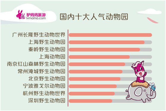 除此之外,驢媽媽根據(jù)去年一年其平臺上的訂單數(shù),統(tǒng)計出了國內(nèi)動物園類景區(qū)人氣榜,廣州長隆野生動物世界依然最受游客追捧,而上海野生動物園、秦嶺野生動物園、上海動物園、南京紅山森林動物園、常州淹城野生動物園、北京野生動物園、寧波雅戈爾動物園、杭州野生動物世界、深圳野生動物園也位列十大人氣動物園榜單之列。