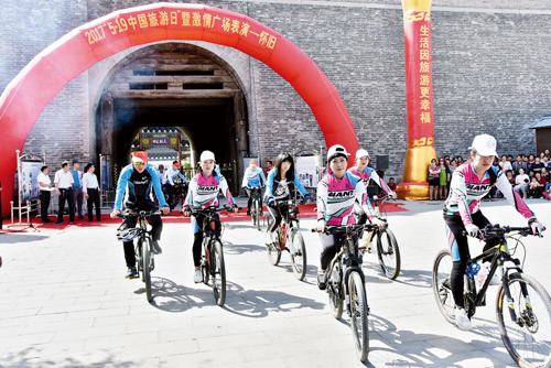 活動(dòng)中,旅行社代表發(fā)言,旅行社導(dǎo)游集體宣誓,旅行社負(fù)責(zé)人和導(dǎo)游集體簽署文明旅游承諾書。啟動(dòng)了捷安特騎行隊(duì)騎游。縣文化藝術(shù)館舉辦了“激情廣場表演——懷舊專場”演出,節(jié)目有舞蹈、獨(dú)唱、晉劇選段、吉他彈奏、勁舞、歌伴舞、詩朗誦、水兵舞、旗袍秀等,贏得現(xiàn)場觀眾陣陣熱烈的掌聲,將“5·19中國旅游日”宣傳活動(dòng)推向了高潮。圖為捷安特騎行隊(duì)出發(fā)騎游(石俊文 攝影報(bào)道)