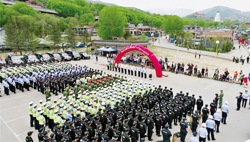為了擦亮佛教圣地五臺山這個(gè)旅游窗口,打造形象五臺山,忻州市公安局部署從今年5月1日起至10月31日,在五臺山風(fēng)景區(qū)開展流動(dòng)人口暨治安秩序大整治(即兩項(xiàng)整治)工作,從秩序安全、流動(dòng)人口管理、治安、交通和消防等5大類33個(gè)層面對五臺山風(fēng)景區(qū)進(jìn)行集中整治。時(shí)值“兩項(xiàng)整治”進(jìn)入高潮之際,五臺山迎來了“5.19”中國旅游日,忻州市公安局黨委將此次“5.19”治安工作作為“兩項(xiàng)整治”的第一次大考,當(dāng)作首次檢驗(yàn)整治機(jī)制、設(shè)施、效果和隊(duì)伍的絕佳機(jī)會(huì)。為此,市公安局從市局、五臺山風(fēng)景區(qū)、五臺縣、繁峙縣、原平市、代縣等地和武警、消防、保安公司抽調(diào)精干警力和安保人員組成執(zhí)勤隊(duì)伍。18日下午,市公安局在五臺山景區(qū)舉行戰(zhàn)前動(dòng)員會(huì)。動(dòng)員指出:省、市黨委政府高度重視五臺山工作,忻州公安要提高政治站位抓安保;“5.19”安保是對全市公安機(jī)關(guān)戰(zhàn)斗力的一次綜合檢驗(yàn),是十九大前的一次安保實(shí)兵演練,要堅(jiān)定必勝信心抓安保;此次安保意義重大,要發(fā)現(xiàn)差距,總結(jié)經(jīng)驗(yàn),固化機(jī)制,為五臺山形成安全穩(wěn)定暢通有序的長效安保機(jī)制打下基礎(chǔ)。
