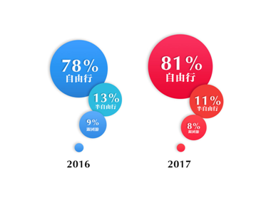 出境游游客年齡構(gòu)成 “愛自由、夠灑脫、重體驗、舍得花”,可謂是對年輕出境游客的特征總結(jié)。 “愛自由”早已是年輕群體的標(biāo)簽,81%的他們更愿意以自由行的方式出境旅行。與此同時,在游玩方式上,“樂高組件式”預(yù)訂越來越受青睞,租車在境外自駕游的游客,2017年比2016年上漲了337%,簡直比自由更自由。