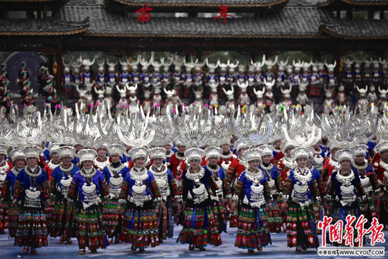 11月23日,來自美國、加拿大、澳大利亞、泰國、法國、老撾等20多個國家和廣西、四川及貴州凱里、興仁、從江等20多個地區(qū)的苗族同胞慶祝團隊齊聚貴州省雷山縣,與16萬雷山苗族人民歡度苗年。整個苗年慶?;顒訉⒊掷m(xù)14天。 中國青年報·中青在線記者 白皓/攝