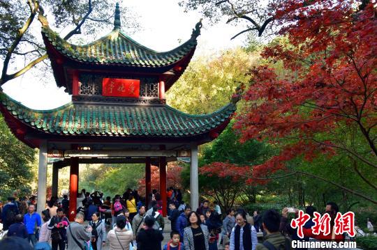 11月26日,長沙岳麓山上迎來眾多游客扎堆賞楓。岳麓山是全國四大賞楓勝地之一,每年的11月下旬至12月為最佳觀賞期,登山可看到“漫山紅遍,層林盡染”的美景。
