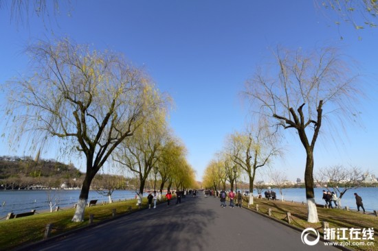 1月9日,寒潮伴隨著“三九”抵杭。西湖邊,雖冷,但久違的“西湖藍”,卻足以刷爆“朋友圈”。(浙江在線 拍友 里爾 攝)