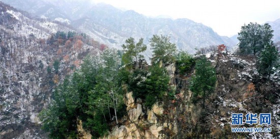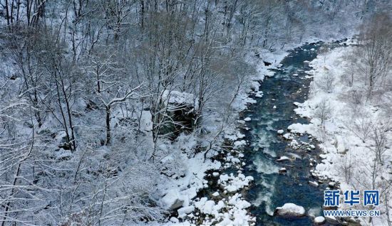 11月25日無人機拍攝的秦嶺西安段灃峪口雪景。 當日,秦嶺雪后初霽,重重山巒在白雪覆蓋下宛若仙境。 新華社記者 劉瀟 攝