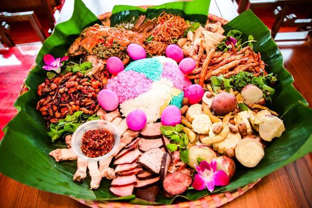 或在小鎮(zhèn)長街,或在春日錦雞廣場,或在東湖水中畫舫,苗侗特色的各類丹寨傳統(tǒng)美食,每每都能出人意表、創(chuàng)意十足。在丹寨萬達(dá)小鎮(zhèn)有幾樣美味你是一定不能錯過的:酸湯魚、五彩飯,還有連馬布里都贊不絕口的斗雞肉……每年杜鵑花節(jié)期間,豐富多彩的美食都讓小鎮(zhèn)盛滿歡樂。