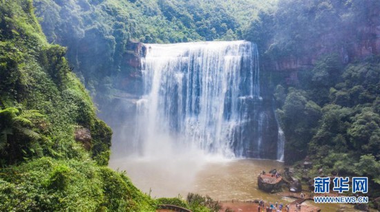6月15日,游客在赤水大瀑布景區(qū)觀光游玩。新華社記者 陶亮 攝